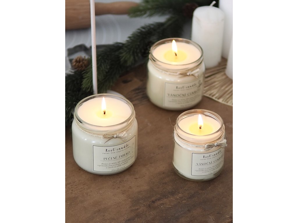 100% přírodní sójový vosk a certifikované vonné oleje s bavlněnými knoty.